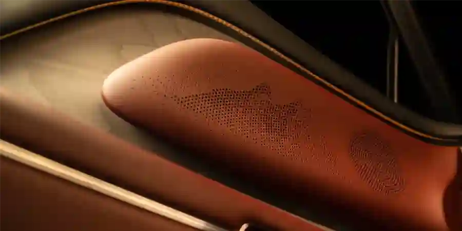 В отделке используются материалы безупречного качества. В обивке кресел и панелей используется перфорированная эко-кожа, отвечающая строгому стандарту качества OEKO-TEX Standard 100 с ультратонкими отверстиями диаметром менее 0,9 мм, формирующими матричный рисунок, который усиливает игру света и тени.
